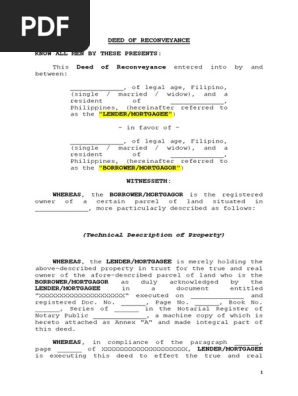 Web A reconveyance deed is an official document from a mortgage holder releasing the debtor from the mortgage.